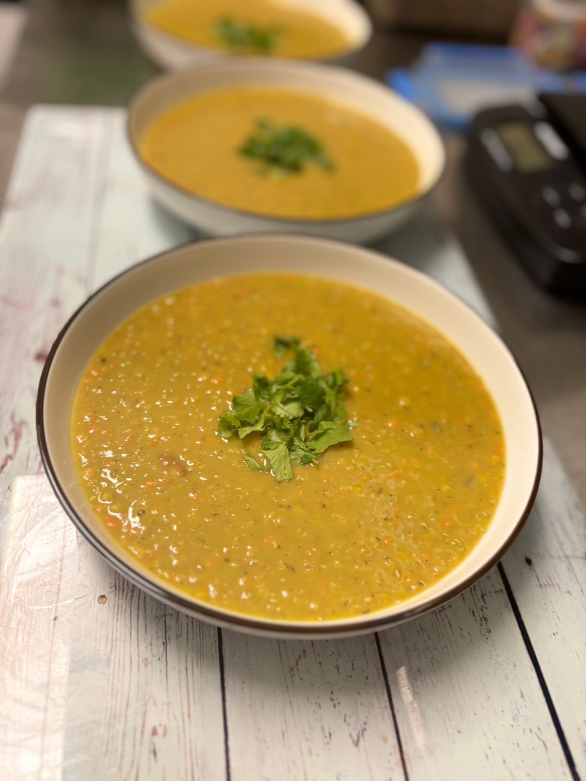 Einer unserer Spezialitäten ist ein Rotes Linsen Dal (Indisches/Pakistanisches Veganes Gericht) und auch gerne mit unserem hausgemachtem Pulled Kikok Hähnchen als Einlage. Dazu reichen wir einen frischen, warmen Veganen Original Amerikanischen Bagel.